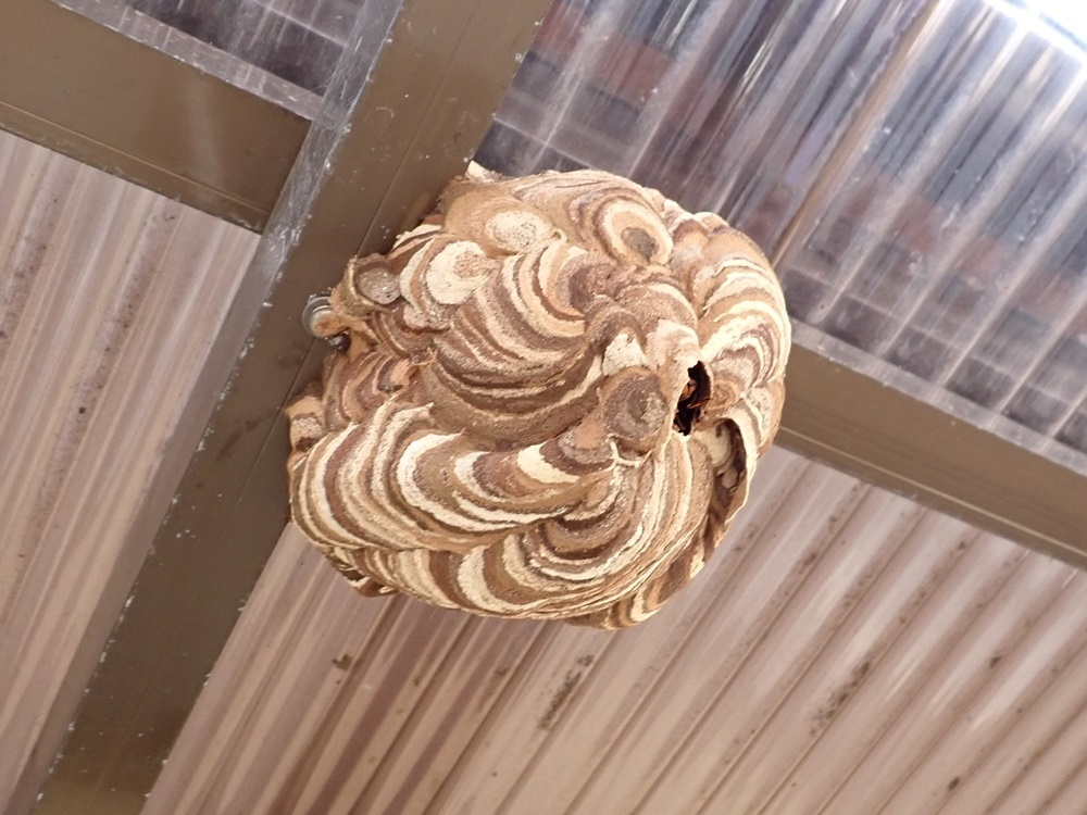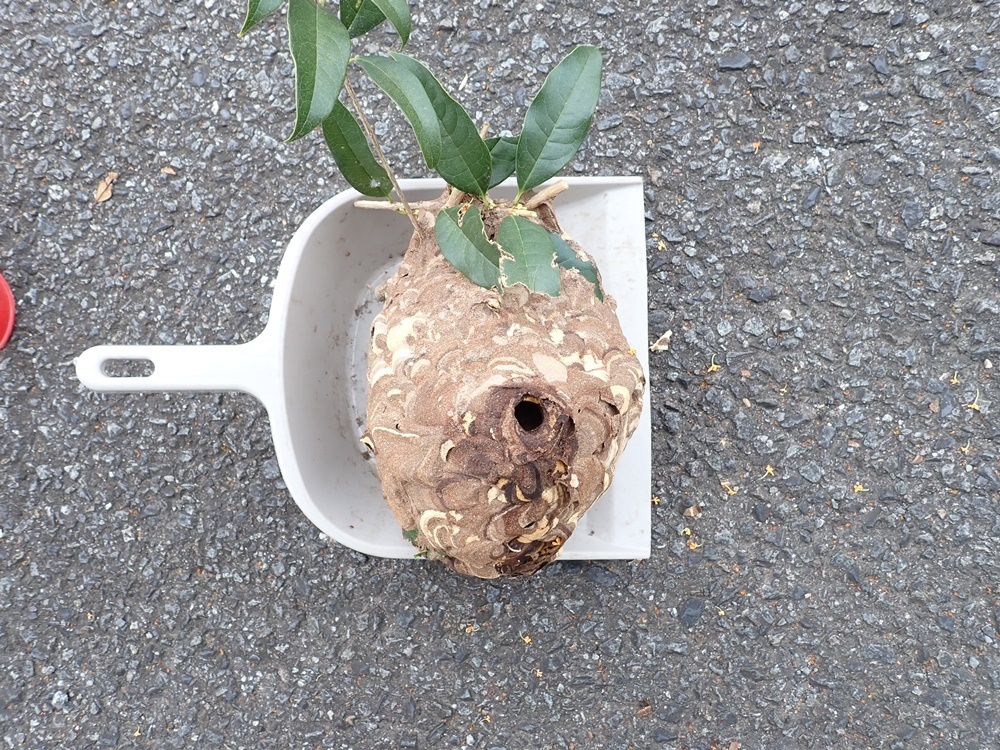 巣にいる蜂と戻りバチをしっかり駆除したあとで巣を撤去