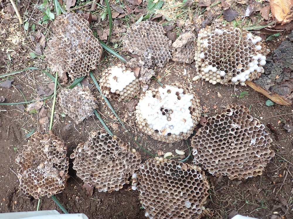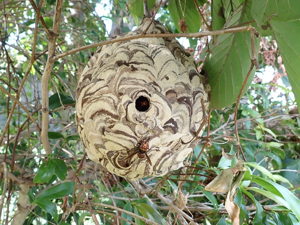 スズメバチの中で一番ご依頼の多いコガタスズメバチです。今回は目線の高さに巣があるので作業がしやすかったです
