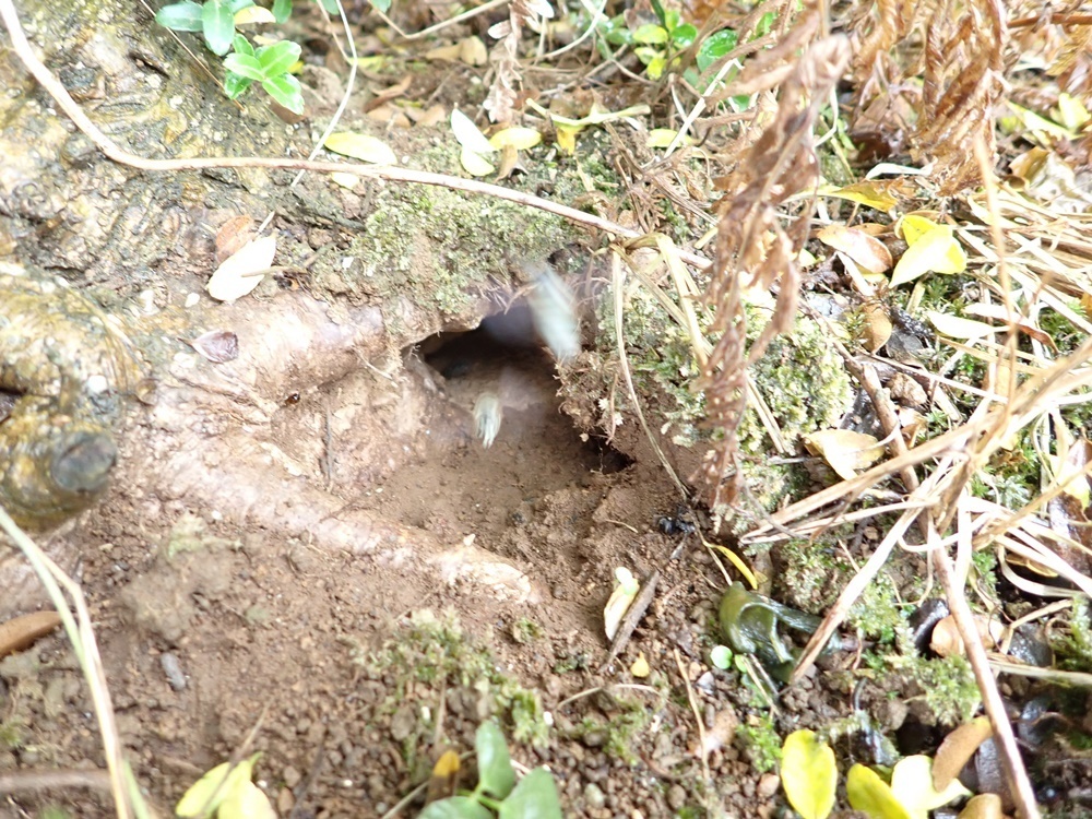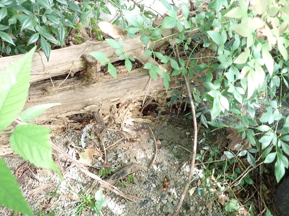 裏庭の倒木あたりから大きな蜂が大量に出入りしているので駆除してほしいとご依頼をいただきました