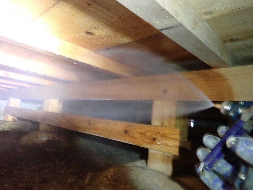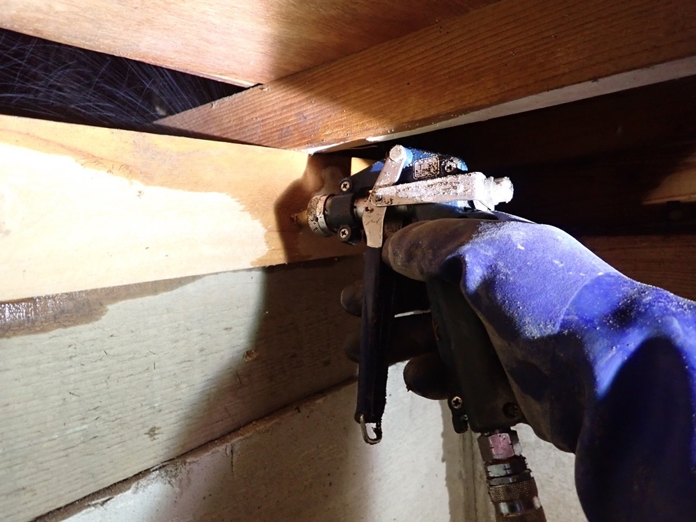 被害のない木部は全体に薬剤散布