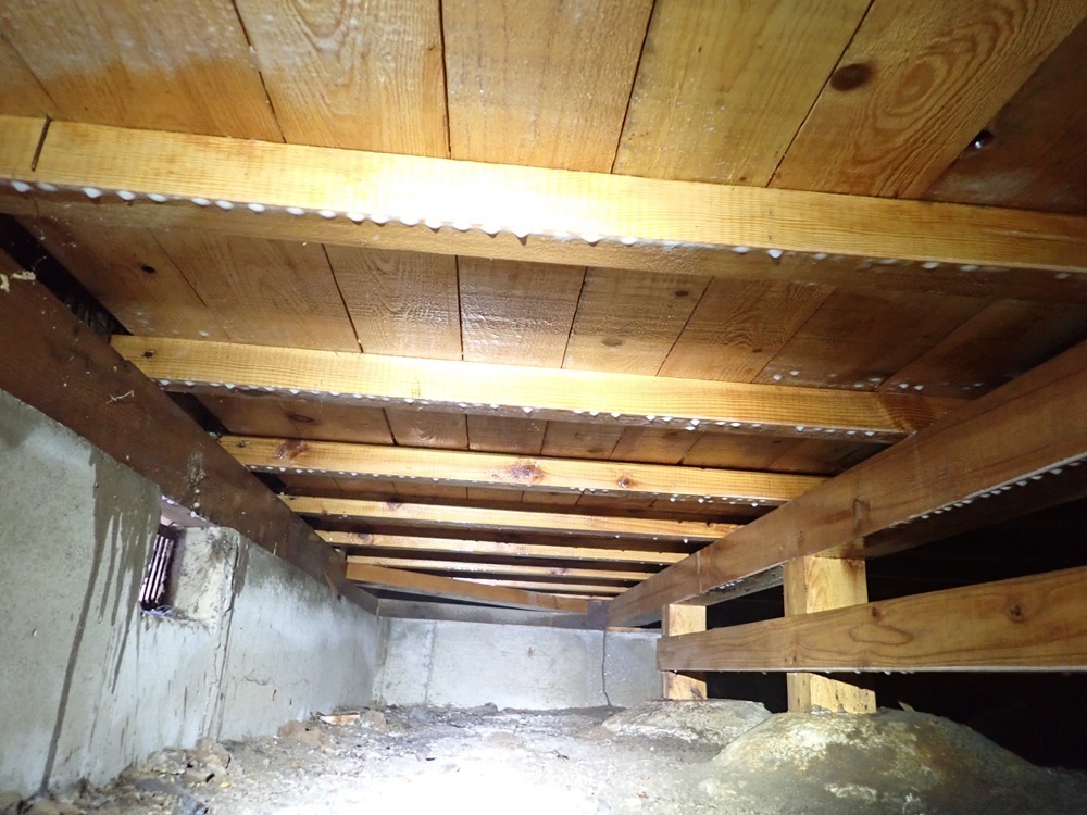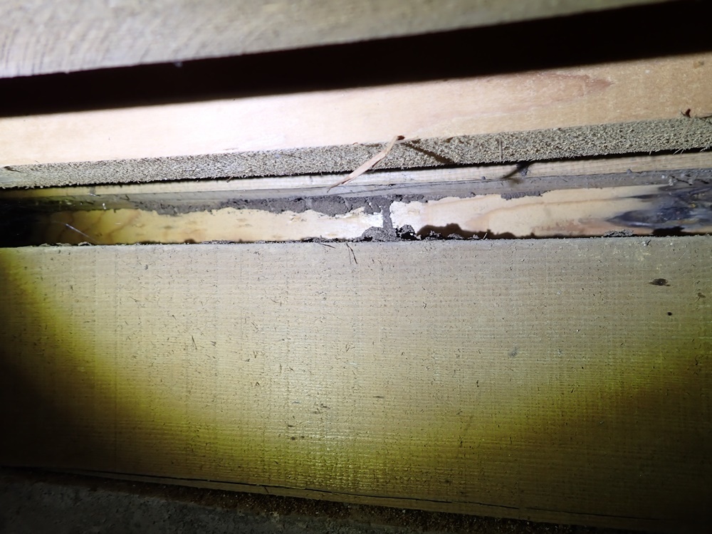 玄関ドアの枠が被害を受けており、外からみてお客様が被害を確認できましたので、このタイミングでご依頼いただきました。気づけたのはたまたまで、実際にはもっと前から床下の被害は進行していたのでした。地元の信頼できる専門業者に5年に一回くらいは無調調査をしてもらうことをおすすめいたします。