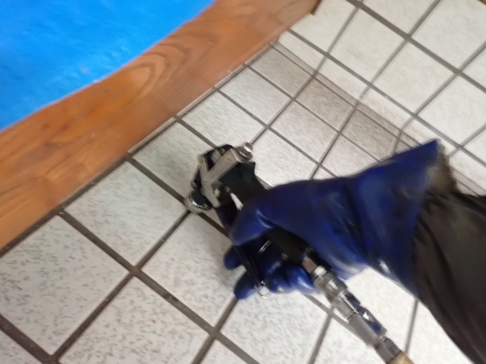 浴室が床下から施工できないお家であった為、タイル目地に穴を開けて壁内に薬剤を届かせる