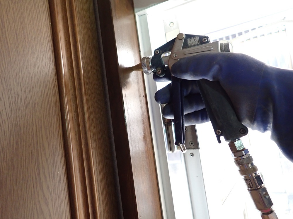 コンプレッサーで圧をかけて薬剤を浸透させる